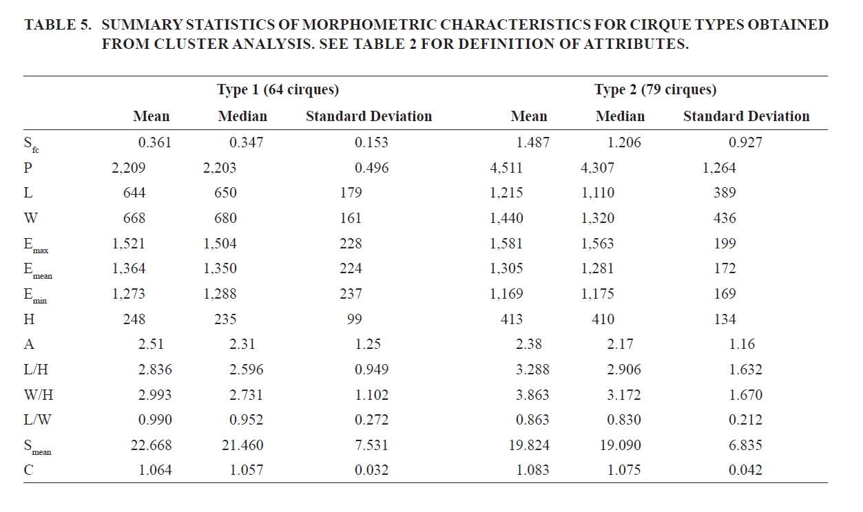 Based on cluster analysis, two morphological cirque types can be distinguished (Fig.10, Table 5).